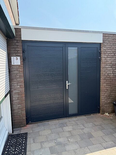 GDC DL40 openslaande garagedeuren worden in de dag gemonteerd, dit wil zeggen in de opening van de garage.